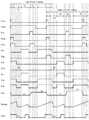 続いて、図4のタイミング図を用いてA/D変換器300を有する固体撮像装置100の動作の一例を説明する。図4に示される各パルス信号はタイミング制御部195によって生成されて固体撮像装置100内の各回路素子に供給される。図4において、一部のスイッチ群に同一のパルス信号が供給されるが、それぞれのスイッチに個別にパルス信号が供給されてもよい。これは他のタイミング図についても同様に当てはまる。図4では連続してデータが読み出される第n行の画素111(第1画素)と第n+1行の画素111(第2画素)との動作について説明する。期間Tにおいて第n行の画素111のデジタルデータが信号処理部190に読み出され、期間T´において第n+1行の画素111のデジタルデータが信号処理部190に読み出される。図示されるように、期間Tの一部と期間T´の一部とが重複することにより、A/D変換にかかる時間を短縮できる。  Next, an example of the operation of the solid-