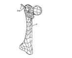 上で説明した例示的実施形態は、ばね様コンプライアンス部材に結合される締付け機構を示しているが、この締付け機構は、ばねまたは他の内部フィクセータには無関係に使用することができることは理解されよう。他の用途には、テザーが結び目を使用して固着され、またはテザーがクリンプされる、等々の用途を含むことができる。これらの用途には、複数の棘状突起または板への実質的に剛直なテザーの用途に加えて、転子を固定する場合のように締結用途を含むことができる。図8A〜8Bは、転子を固定するためのテザーおよび締付け機構の使用を示したものである。図8Aは、大腿骨Fの転子の周囲に巻き付けられたテザーTを示したものである。締付け機構FMは、テザーTの一方の末端を解放可能に固定し、それにより転子の周囲に閉ループを形成している。図8Bは、転子の周囲に巻き付けられたテザーを強調したものである。 While the exemplary embodiment described above shows a clamping mechanism coupled to a spring-like compliance member, it will be understood that this clamping mechanism can be used independently of a spring or other internal fixator. . Other applications may include applications where the tether is secured using a knot, or the tether is crimped. These applications can include fastening applications, such as when securing a trochanter, in addition to the use of a substantially rigid tether to a plurality of spinous processes or plates. 8A-8B illustrate the use of a tether and a tightening mechanism to secure the trochanter. 8A shows the tether T wrapped around the trochanter of the femur F. FIG. The tightening mechanism FM releasably secures one end of the tether T, thereby forming a closed loop around the trochanter. FIG. 8B highlights the tether wrapped around the trochanter.