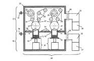 蒸発室及び成膜室を構成する真空槽22は耐圧性の金属製容器であり、真空槽22と真空ポンプ37,38は真空バルブ(図示せず)を介して接続されている。真空ポンプ37,38には各種真空ポンプが適用可能であり、一般に、主ポンプと、油回転ポンプ等からなる補助ポンプとから構成される。主ポンプとしては、油拡散ポンプ、クライオポンプ、又は、ターボ分子ポンプを用いるのが好ましい。主ポンプの開閉を行う主バルブ32を設けることが望ましい。また、主ポンプと蒸発室及び成膜室との間に排気速度の調整を行うコンダクタンスバルブ29を設けることが望ましい。 The