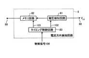メモリ回路(82)は、デジタル的な回路として構成することも出来る。例えば、SRラッチ回路等を用いることが出来る。電圧検知回路(81)の出力を、SRラッチ回路(図示せず)のセット入力に供給し、そのリセット入力として、タイミング制御回路(83)からのタイミング制御信号(101)を供給する。 The memory circuit (82) can also be configured as a digital circuit. For example, an SR latch circuit or the like can be used. The output of the voltage detection circuit (81) is supplied to the set input of the SR latch circuit (not shown), and the timing control signal (101) from the timing control circuit (83) is supplied as the reset input.