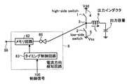 1  ハイサイドスイッチ、2  ローサイドスイッチ、3  出力端子、4  高電位側電源端子、5  低電位側電源端子、6  出力インダクタ、7  出力容量、8  電流方向検知回路、9  逆流検知回路、10  制御回路、81  電圧検知回路、82  メモリ回路、83  タイミング制御回路、84  コンパレータ、85  CMOSインバータ、86  クロックトインバータ、108  メモリ回路、109  SRラッチ回路、135  マルチプレクサ、137  アップダウンカウンタ、145  アップダウンカウンタ、148  マルチプレクサ、155  抵抗制御回路、159  差動増幅器、165  マルチプレクサ、167  アップダウンカウンタ、173  アップダウンカウンタ、175  抵抗制御回路、185  抵抗制御回路、186  アップダウンカウンタ、188  差動増幅器、195  抵抗制御回路、196  アップダウンカウンタ  1 High side switch, 2 Low side switch, 3 Output terminal, 4 High potential side power supply terminal, 5 Low potential side power supply terminal, 6 Output inductor, 7 Output capacity, 8 Current direction detection circuit, 9 Backflow detection circuit, 10 Control circuit, 81 voltage detection circuit, 82 memory circuit, 83 timing control circuit, 84 comparator, 85 CMOS inverter, 86 clocked inverter, 108 memory circuit, 109 SR latch circuit, 135 multiplexer, 137 up / down counter, 145 up / down counter, 148