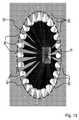 図13は、本発明による環形照明器20を形成するように複数のビーム整形器50が環状に配置された、可能な実装の実施形態である。環形照明器20内に配置される複数のビーム整形器50は、照明されるべき領域15に均質な照明を与える。歪像部分80(図9を参照すること)の直径82は、環形照明器20内に配置されるビーム整形器50の数を制限する。ここで示される実施形態では、歪像部分80の直径82は、30mmであり、それにより、約24個のビーム整形器50が、環形照明器20内に配置されることになる。  FIG. 13 is a possible implementation embodiment in which a plurality of