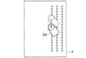 図21は、ユーザが、対象表示画面4に対して、表示情報選択操作に続いて、左下スライド操作を行う様子を示す図である。図21に示されるように、ユーザが、表示情報選択操作に続いて、自身の指250を対象表示画面4に接触させた状態で、選択文字列260から左下方向にスライドさせると、画面操作特定部210では、対象表示画面4に対して、表示情報選択操作に続いて左下スライド操作が行われたことが特定される。そうすると、処理実行部200は、対応関係テーブル222を参照して、左下スライド操作に対応する辞書登録処理を選択文字列260を用いて実行する。具体的には、処理実行部200は、選択文字列260を、記憶部22に記憶されている辞書データベースに登録する。  FIG. 21 is a diagram illustrating a state in which the user performs a lower left slide operation on the