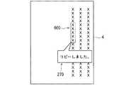 処理実行部200では、表示情報利用処理が完了すると、対象表示画面4を有する表示部3が、表示制御部204による制御によって、図12に示されるように、表示情報利用処理が完了したことを示す処理完了通知情報270、ここでは、選択文字列260のコピーが完了したことを示す処理完了通知情報270を対象表示画面4に表示する。対象表示画面4を有する表示部3は、対象表示画面4において、処理完了通知情報270が一定時間表示されると、当該処理完了通知情報270の表示を消去する。これにより、処理完了通知情報270は一定時間表示された後に、自動的に消去される。  In the