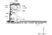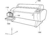 図4は、本発明による印刷システムの一実施形態における印刷装置の構成を示す斜視図である。印刷装置1000は、インクカートリッジが装着されるカートリッジ装着部1100と、回動自在なカバー1200と、操作部1300とを有する。この印刷装置1000は、ポスターなどの大判の用紙(A2〜A0サイズ等)に印刷を行う大型のインクジェットプリンター(Large Format Ink Jet Printer)である。カートリッジ装着部1100を「カートリッジホルダー」又は単に「ホルダー」とも呼ぶ。図4に示す例では、カートリッジ装着部1100には、4つのインクカートリッジが独立に装着可能であり、例えば、ブラック、イエロー、マゼンタ、シアンの4種類のインクカートリッジが装着される。なお、カートリッジ装着部1100に装着されるインクカートリッジとしては、これ以外の任意の複数種類のインクカートリッジを採用可能である。図4には、説明の便宜上、互いに直交するXYZ軸が描かれている。+X方向は、インクカートリッジ100がカートリッジ装着部1100に挿入される方向(以下、「挿入方向」又は「装着方向」と呼ぶ)である。カートリッジ装着部1100には、カバー1200が開閉可能に取り付けられている。カバー1200は省略可能である。操作部1300は、ユーザーが各種の指示や設定を行うための入力装置であり、また、ユーザーに各種の通知を行うための表示部を備えている。なお、この印刷装置1000は、印刷ヘッドや、印刷ヘッドの走査を行うための主走査送り機構及び副走査送り機構、印刷ヘッドを駆動してインクを吐出させるヘッド駆動機構等を有しているが、ここでは図示を省略する。この印刷装置1000のように、ユーザーにより交換されるカートリッジが、印刷ヘッドのキャリッジ以外の場所に設けられたカートリッジ装着部に装着される印刷装置のタイプを、「オフキャリッジタイプ」と呼ぶ。B. First embodiment of printing system: