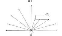 図3に、清掃ロボット1が清掃を実施すべき清掃領域内において清掃ロボット1(レーザレンジファインダ20)の前方に壁25aが設けられている様子を示している。図3に示すように、清掃ロボットはその前方に向かってレーザレンジファインダ20からレーザ光を照射している。このとき、レーザレンジファインダ20のセンシング領域内には壁25aが含まれている。このような場合、レーザレンジファインダ20によりセンシングされた壁25aまでの距離が演算部30に設けられた記録領域(図示せず)に記憶される。  FIG. 3 shows a state in which a