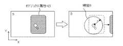 更に、視線領域と重なるオブジェクトの属性を判定し、その判定結果に応じて、オブジェクトの表示位置及び/又は表示形態を変更する。例えば、そのオブジェクトが、背景とは関係なく独立して表示するオブジェクトである旨の属性を有すると判定した場合は、オブジェクトの表示位置を視線領域外に移動させたり、オブジェクトの透過率を大きく(オブジェクトを薄く表示)したりし、背景と重畳表示するオブジェクトである旨の属性を有すると判定した場合は、オブジェクトの透過率を大きく(オブジェクトを薄く表示)する。 Furthermore, the attribute of the object that overlaps the line-of-sight area is determined, and the display position and / or display form of the object is changed according to the determination result. For example, if it is determined that the object has an attribute indicating that it is an object to be displayed independently of the background, the display position of the object is moved outside the line-of-sight area, or the transmittance of the object is increased ( If it is determined that the object has an attribute indicating that the object is superimposed on the background, the transmittance of the object is increased (the object is displayed lightly).