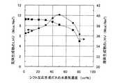 図2は、シフト反応生成ガスの水蒸気濃度と、ポリエチレンの改質(反応温度:800℃)におけるガス化率および液化率との関係を示したものである(なお、図中に矢印で示すように、■が「液化率」、◆が「ガス化率」をそれぞれ示している)。ここで、ガス化率とは、供給したシフト反応生成ガスとポリエチレンの合計量(kg/h)に対する気体生成物の生成量(kg/h)の割合であり、気体生成物の定義は表1に示すようにH2からC4までとした。同様に、液化率とは、供給したシフト反応生成ガスとポリエチレンの合計量(kg/h)に対する液体生成物の生成量(kg/h)の割合であり、液体生成物の定義は表1に示すようにC5からC24までとした。図3は、シフト反応生成ガスの水蒸気濃度と、ポリエチレンの改質(反応温度:800℃)で得られた気体生成物および液体生成物のLHVとの関係を示したものである(なお、図中に矢印で示すように、■が「液体生成物のLHV」、◆が「気体生成物のLHV」をそれぞれ示している)。ここで、液体生成物のLHVは、液体生成物の気体換算の標準状態における体積当たりのLHVで表した。図4は、シフト反応生成ガスの水蒸気濃度と、ポリエチレンの改質によるポリエチレン分解率との関係を示したもので、特に、反応温度500℃と800℃においてポリエチレン分解率が同等であることを示したものである。図5は、シフト反応生成ガスの炭酸ガス濃度と、ポリエチレンの改質(反応温度:800℃)で得られた気体生成物の水素濃度との関係を示したものである。図6は、シフト反応生成ガスの水素濃度と、ポリエチレンの改質(反応温度:500℃)で得られた気体生成物の炭酸ガス濃度との関係を示したものである。FIG. 2 shows the relationship between the water vapor concentration of the shift reaction product gas and the gasification rate and liquefaction rate in the reforming of polyethylene (reaction temperature: 800 ° C.)(as indicated by arrows in the figure). , ■ indicates “liquefaction rate” and ◆ indicates “gasification rate”) . Here, the gasification rate is a ratio of the production amount (kg / h) of the gas product to the total amount (kg / h) of the supplied shift reaction product gas and polyethylene, and the definition of the gas product is shown in Table 1. From H2 to