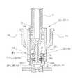 口金42は、上端面と連続し、外周面から突出するフランジ部42aと、フランジ部42aの下方に位置する雄ねじ部42bとが形成されている。フランジ部42aと雄ねじ部42bとは、口金42の軸方向に所定の間隔を置いて配されている。雄ねじ部42bには、後述する洗浄用アダプタ60がネジ止めされる。 The base 42 is formed with a flange portion 42 a that is continuous with the upper end surface and protrudes from the outer peripheral surface, and a male screw portion 42 b that is positioned below the flange portion 42 a. The flange portion 42 a and the male screw portion 42 b are arranged at a predetermined interval in the axial direction of the base 42. A cleaning adapter 60 described later is screwed to the male screw portion 42b.