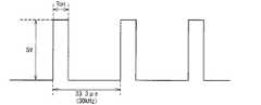 そして、この第1の制御信号S1は、駆動回路IC5に入力され、駆動回路IC5は、第1の制御信号S1の振幅を15Vに増幅して、フライバックコンバータ回路5のスイッチング素子Q1のゲートに出力する。これにより、スイッチング素子Q1が第1の制御信号S1の信号レベルに同期してオン・オフ駆動される。なお、第1の制御信号S1のオンパルス幅Tonが7μsである場合、光源部9に流れる電流が300mAとなるように設定されており、光源部9が全点灯状態となる。  The first control signal S1 is input to the drive circuit IC5, and the drive circuit IC5 amplifies the amplitude of the first control signal S1 to 15 V, and supplies it to the gate of the switching element Q1 of the