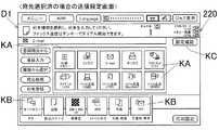 前項(4)に記載の発明によれば、送信宛先が選択されている場合は、データ送信出力設定画面に表示されている複数のデータ送信モード設定キーが第1優先とされ、キー表示可能領域内において、前記データ送信モード設定キーのレイアウトを維持したままでサイズを維持することができない場合は、レイアウトよりもサイズが優先されレイアウトが変更されて表示されるから、データ送信モード設定キーの操作性が維持される。