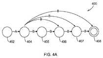一例では、オートマトンは、グルシコフの方法などの、標準的な方法の1つを使用して構築できる。一例では、オートマトンは、εのない(ε−free)均質な(homogenous)オートマトンであり得る。構文木のオートマトンへの変換に関するさらなる詳細は、以下で、図3、図4A〜図4C、図11A、図11B、図12、図13、および図14に関連して提供される。 In one example, an automaton can be constructed using one of the standard methods, such as the Gurshikov method. In one example, the automaton can be an ε-free homogenous automaton. Further details regarding the conversion of a syntax tree to an automaton are provided below in connection with FIGS. 3, 4A-4C, 11A, 11B, 12, 13, and 14. FIG.