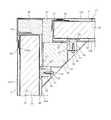 左側壁部3における内板26Aの後部には、収納室8側である右側へ突出する位置決め凸部59が設けられていて、この位置決め凸部59の後面を、前記突出部55の前端部に当接させている。内板26Aの後端部60は左側に向けられ、シール部材57を介して外板25Cの内面に当接させている。図示はしないが、奥壁部5と右側壁部4との間にも上記と同様な構成が設けられている。  A positioning