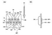 2つの列のうち、装着方向SDの手前側の例(図3(A)における上側に位置する列)を上側列A1(第1列)と呼び、装着方向SDの奥側の列(図3(A)における下側に位置する列)を下側列A2(第2列)と呼ぶ。なお、これらの列A1、A2は、複数の端子の接触部cpによって形成される列であると考えることも可能である。 Of the two rows, an example on the front side in the mounting direction SD (a row located on the upper side in FIG. 3A) is referred to as an upper row A1 (first row), and a rear row in the mounting direction SD (FIG. 3). The lower column in (A) is referred to as a lower column A2 (second column). Note that these rows A1 and A2 can be considered to be rows formed by contact portions cp of a plurality of terminals.