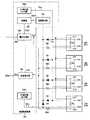 具体的には、例えば図4のB1に示すように、DT1とCO1とが短絡している場合には、DT1からCO1へ、そしてCO1から検出ノードNDへダイオードD1の順方向電流が流れ、その結果、検出ノードNDの電位が上昇する。また、図4のB2に示すように、DT2とCO2とが短絡している場合には、DT2からCO2へ、そしてCO2から検出ノードNDへダイオードD2の順方向電流が流れ、その結果、検出ノードNDの電位が上昇する。短絡検出部310は、この検出ノードNDの電圧と参照電圧とを比較することで、短絡を検出することができる。  Specifically, for example, as shown in B1 of FIG. 4, when DT1 and CO1 are short-circuited, the forward current of the diode D1 flows from DT1 to CO1, and from CO1 to the detection node ND, As a result, the potential of the detection node ND increases. Further, as shown in B2 of FIG. 4, when DT2 and CO2 are short-circuited, a forward current of the diode D2 flows from DT2 to CO2 and from CO2 to the detection node ND. As a result, the detection node The potential of ND increases. The short
