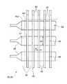 タッチパネル装置は、タッチパネルセンサ上への接触位置(接近位置)を検出する原理に基づいて、種々の形式に区別され得る。昨今では、光学的に明るいこと、意匠性があること、構造が容易であること、機能的にも優れていること等の理由から、容量結合方式のタッチパネル装置が注目されている。容量結合方式のタッチパネル装置においては、位置を検知されるべき外部導体(典型的には、指)が誘電体を介してタッチセンサに接触(接近)することにより、新たに奇生容量が発生し、この静電容量の変化を利用して、タッチパネルセンサ上における対象物の位置を検出するようになっている。容量結合方式には表面型と投影型とがあるが、マルチタッチの認識(多点認識)への対応に適していることから、投影型が注目を浴びている(例えば、特許文献1)。 The touch panel device can be classified into various types based on the principle of detecting a contact position (approach position) on the touch panel sensor. In recent years, capacitive touch panel devices have attracted attention because they are optically bright, have good design properties, have a simple structure, and are superior in function. In a capacitively coupled touch panel device, a strange capacitance is newly generated when an external conductor (typically a finger) whose position is to be detected contacts (approaches) the touch sensor via a dielectric. The position of the object on the touch panel sensor is detected using the change in capacitance. The capacitive coupling method includes a surface type and a projection type. The projection type is attracting attention because it is suitable for multi-touch recognition (multi-point recognition) (for example, Patent Document 1).
