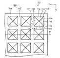 凹部113は、一定の間隔をおいて、直交する2つの面内方向X及びYに沿って連続して配置されている。そして、前記の面内方向X及びYにおいて、隣り合う凹部113の間の隙間に当たる部分が、平坦部114を構成している。したがって、光取出部材層100は、出光面10Uに対して平行な面内方向X及びYにおいて、凹部113と平坦部114とを交互に有することになっている。ここで、かかる2つの面内方向X及びYのうち、一方の面内方向Xは底辺11E及び11Gに対して平行である。この面内方向Xにおいて、複数の凹部113は一定の間隔11Jをおいて整列している。また、2つの面内方向X及びYのうち、他方の面内方向Yは底辺11F及び11Hに対して平行である。この面内方向Yにおいて複数の凹部113は一定の間隔11Kをおいて整列している。ここで、前記隙間に相当する部分である平坦部114は、その幅寸法を通常0.1〜20μmとすることができる。  The