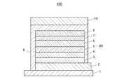 有機化合物層の積層体20とは、陽極2と陰極8との間に設けられている有機EL素子100を構成し有機化合物を含有する各層からなる。  The