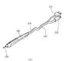 本発明による電気手術装置100の1つの好適な実施形態について、図2A−2Cを参照しながら説明する。本電気手術装置のハンドピースまたはペンシル100は、剛性ハウジング110および伸縮式のノズルまたは先端部120を有している。前述の剛性ハウジングは、例えば成形側面102および104から形成されていてよい。これら2つの側面102、104は接合されて、その内部に中空のチャンバーを有するハウジング110を形成する。ハウジング110の内部には、電極230や、電極用管状構造物270およびガラス繊維プレート240が存在する。電極230は、電極用管状構造物270を通じて延びている。この電極用管状構造物は、更に、不活性ガスを管状構造物220の遠位側端部から導き、その不活性ガスが電極用管状構造物270を通って、その電極用管状構造物270から出て行くことができるようにするためのチャンネル、チューブまたは他の手段を有している。上述の電極用管状構造物に設けられているチャンネルから出た不活性ガスは、その後、ノズル120の遠位側端部に設けられている開口から出て行く。ガラス繊維プレート240および電極230は電気ケーブル・アセンブリ210に接続されている。電極用管状構造物は、それの遠位側端部において、前述のホース管状構造物220に接続されている。伸縮式ノズルと電極用管状構造物との間にはO−リングが配置されていて、それらの間でのシールを形成している。電極がノズル120の遠位側端部に設けられている開口を貫通しているので、ノズル120が熱損傷を受けないように保護するため、伸縮式の先端部またはノズル120の遠位側端部にセラミック製の先端部250を配置してもよい。電気ケーブル・アセンブリはハウジング110の近位側端部から延びており、それの遠位側端部にプラグ212を有している。本装置を操作する際には、このコネクター212が電気手術用ジェネレーターに接続される。また、PVCホース管状構造物もハウジング110の近位側端部から延びていて、それの遠位側端部に、ガスコネクター本体222や、ガスコネクター先端部224およびO−リング226を有している。本装置を操作する際には、このガス・コネクター・アセンブリ(222、224、226)がアルゴンなどの不活性ガス源に接続される。  One preferred embodiment of an