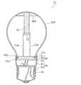 半導体発光素子である発光ダイオード(LED:Light Emitting Diode)は、従来の照明光源に比べて、小型、高効率及び長寿命である。近年の省エネあるいは省資源に対する市場ニーズが追い風となり、フィラメントコイルを用いた従来の白熱電球の代替えとなるランプとして、LEDを用いた電球形ランプ(以下、単に「LED電球」ともいう)の需要が増加している。 A light emitting diode (LED), which is a semiconductor light emitting element, is smaller, more efficient, and has a longer life than a conventional illumination light source. Market demand for energy saving or resource saving in recent years has been a tailwind, and there is a demand for light bulb shaped lamps using LEDs (hereinafter also simply referred to as “LED bulbs”) as lamps that can replace conventional incandescent bulbs using filament coils. It has increased.