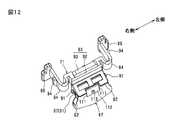 下ユニット6の後上端部において、左右方向の中央部12Cの上面は、前下がりに傾斜している。中央部12C上には、左右方向の中央に、略矩形板状の本体側案内部材13が固定的に配置されている。  At the upper rear end portion of the