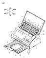 また、排出トレイ4の上面26には、補助板27が排出トレイ4の前端縁に沿った軸線まわりに揺動可能に設けられている。補助板27は、揺動により、上面26に対して倒伏した姿勢と、排出トレイ4がスキャナ本体2の前方に引き出された状態で、上面26の前端部から前上方に延びる姿勢とに変位可能である。