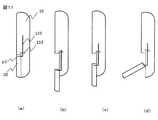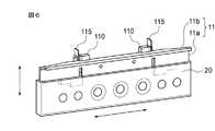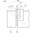 正面パネル11の垂直部11aには、スライド部材115の垂直方向の移動を許容するためのスリット11cが形成されている。スライド部材115は、左右のブロック110それぞれに設けられており、その構造は共通しているので、以下、一つのスライド部材115について説明する。  In the