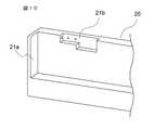 スライド部材115が連結される操作パネル20の裏面構造を図10に示す。図示するように、操作パネル20の操作ボタン(図31:21〜27)が設けられている側を正面とすると、その裏面には正面パネル11の垂直部11aを収納するために、裏面の最表面に対し段差を持つ平坦部21aが形成されている。また平坦部21aの上端には、軸部1152(固定部1152a及び回転部1152b)の形状に相当する形状の凹部21bが形成されており、この凹部21b内に、正面パネル11の垂直部11aから前面に突き出た軸部1152が収納される。軸部1152の回転部1152bは、この凹部21bの対応する位置にネジ等によって固定されている。固定部1152aと回転部1152bの大きさを異ならせることで、横方向のずれを防止することができ、また固定部1152aが面で抑えられるので回転を防止して姿勢を保持することができる。  FIG. 10 shows the back surface structure of the