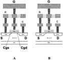 イオン感応性に関して、一般的に「表面電位」と称される電位差が、(例えば、感応性領域に近接する分析用溶液中のイオンによる酸化物表面グループの解離を通常含む)化学反応による感応性領域内のイオン濃度に応じてパッシベーション層および分析用溶液の固体/液界面において生じる。この表面電位は、ISFETの閾値電圧に順番に作用し、したがって、感応性領域に近接する分析用溶液内のイオン濃度の変化により変化するのは、ISFETの閾値電圧である。ISFETの閾値電圧VTHがイオン濃度に対して感応性があるので、Rothbergに記載されているように、電源電圧VSは、ISFETの感応性領域に近接する分析用溶液内のイオン濃度に直接関連する信号を供給する。 With respect to ion sensitivity, the potential difference commonly referred to as “surface potential” is sensitive to chemical reactions (eg, typically involving dissociation of oxide surface groups by ions in an analytical solution proximate to the sensitive region). It occurs at the solid / liquid interface of the passivation layer and the analytical solution depending on the ion concentration in the region. This surface potential in turn acts on the threshold voltage of the ISFET, so it is the threshold voltage of the ISFET that changes with changes in the ion concentration in the analytical solution proximate to the sensitive region. Since the threshold voltage VTH of the ISFET is sensitive to ion concentration, the power supply voltage VS is directly related to the ion concentration in the analytical solution close to the sensitive region of the ISFET, as described in Rothberg. Supply signal.