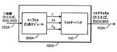 他の一態様によると、画像取込デバイス・センサ出力に応答して色出力信号を生成するスペクトル合成モジュールは、