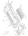 第4の特徴は、前記係止片部は、前記基部の一端部から突出する第1の係止片部と、他端部から突出する第2の係止片部とを備えており、前記ヘッダ側保持金具が、前記基部と前記第1の係止片部と前記第2の係止片部とによって略逆U字状に形成されていることを要旨とする。 According to a fourth feature, the locking piece portion includes a first locking piece portion protruding from one end portion of the base portion, and a second locking piece portion protruding from the other end portion, The gist of the present invention is that the header-side holding metal fitting is formed in a substantially inverted U shape by the base, the first locking piece, and the second locking piece.