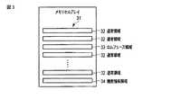図3は、第1実施形態に係るメモリセルアレイによる記憶空間31の区分を示している。図3に示されるように、記憶空間31は、通常領域32、ロムフューズ領域33、機密情報領域34を含んでいる。通常領域32、ロムフューズ領域33、機密情報領域34は、少なくともページより大きな単位から構成される。通常領域32、ロムフューズ領域33、機密情報領域34は、1または複数のページであってもよいし、1または複数のブロックであってもよい。通常領域32、ロムフューズ領域33、機密情報領域34の位置は任意であり、図の例に制限されない。通常領域32、ロムフューズ領域33、機密情報領域34は、みな同じ物理的な構造(要素および接続)を有し、相互に区別されない。一方、通常領域32、ロムフューズ領域33、機密情報領域34は、相違する種類の情報を保持し、したがって相違する用途を有する。ロムフューズ領域33の一部を機密情報領域34として物理的に同一の領域をロムフューズ領域33と機密情報領域34という相違する用途で共用することが可能である場合には、そのようにしてもよい。たとえば、ブロックからなるロムフューズ領域33のうち、特定のページのみを機密情報領域34として用いる等が可能である。  FIG. 3 shows the division of the