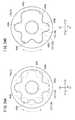 図9に示すように、駆動シャフト115(116)の下端側(Y2側)はベアリング124に軸支された部分より下部が段付き形状となっており、順に、Oリング131が外嵌されるフランジ115a(116a)と、該フランジ115a(116a)より大径でコイルばね121の上部が着座する短尺円筒状のフランジ座115b(116b)と、コイルばね121が外嵌され且つ係合凸部137(138)が進退可能に挿通される断面波形六角形状の波形部115c(116c)(図22A参照)とが設けられている。係合凸部137(138)は、コイルばね121によってY2方向に付勢されつつ、該係合凸部137(138)を貫通した駆動シャフト115(116)のY2方向端近傍に嵌合されたEリング123によって抜け止めされている。すなわち、係合凸部137(138)は、駆動シャフト115(116)の波形部115c(116c)に対し、回転不能に且つY方向(軸方向)に進退可能に弾性支持されている。コイルばね121の下端部は、係合凸部137(138)の上面側に図示しない環状凹部を形成し、該環状凹部内に挿入されるように配置されてもよい。 As shown in FIG. 9, the lower end side (Y2 side) of the drive shaft 115 (116) has a stepped shape below the portion pivotally supported by the