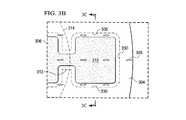 ここで図3A−図3Cを参照すると、開腔、減圧治療装置302の別の例示する実施形態が示されている。開腔、減圧治療装置302は、図1A−図1Dの治療装置102とほぼ同じである。開腔、減圧治療装置302は、非接着性ドレープ304と、複数のカプセル型脚状部材306と、中央連結部材308とを有する。この特定の例示する実施形態では、非接着性ドレープ304が略楕円または弓の形状で形成される。非接着性ドレープ304には複数の開口部305が形成される。非接着性ドレープ304は、第2の脚状カプセル化部材(図1Bの類似する第2の脚状カプセル化部材170を参照)と、第2の連結カプセル化部材とを形成する(図1Dの類似する192を参照)。そのため、複数の開口部305は、第2の内向き面で複数のカプセル型脚状部材306と中央連結部材308の流路として機能する。非接着性ドレープ304は、複数のカプセル型脚状部材306と中央連結部材308の第1の面に用いることもできる。  Referring now to FIGS. 3A-3C, another exemplary embodiment of an open space, reduced