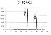 4インチSiウエハ上に膜厚300nmのSiO2膜を形成し、このSiO2膜上に膜厚5nmのTiOX膜を形成する。次に、このTiOX膜上に例えば(111)に配向した膜厚150nmのPt膜を形成し、このPt膜上にスピンコーターによってPZTゾルゲル溶液を回転塗布する。この際のスピン条件は、1500rpmの回転速度で30秒間回転させ、4000rpmの回転速度で10秒間回転させる条件である。A 300 nm thick SiO2 film is formed on a 4-inch Si wafer, and a 5 nm thick TiOx film is formed on the SiO2 film. Next, a Pt film having a film thickness of, for example, (111) is formed on the TiOX film, and a PZT sol-gel solution is spin-coated on the Pt film by a spin coater. The spin condition at this time is a condition for rotating for 30 seconds at a rotational speed of 1500 rpm and for 10 seconds at a rotational speed of 4000 rpm.