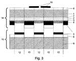 図2と図3では、個々の層の相互の付着関係の形成の詳細が異なっている。領域10〜領域13は、操作証明を誘発させた際に光学的効果を可視化させる本発明による個々の層の付着関係を明確に示している。  FIG. 2 and FIG. 3 differ in the details of forming the adhesion relationship between the individual layers.