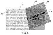 図5は、本発明によるセキュリティラベルを、一部が剥がれた状態で示しており、つまり不正操作の明示の一部が活性化された場合を示している。保護すべき対象物上にはラベルの部分15が残り、この部分15は光学特性を有する層5における凹部を、ネガ状の記号18(「VOID」)の形で有している。光学特性を有する層5のうち、ラベルの剥がされた部分14上に残っている部分は、ポジ状の記号19の形で存在している。FIG. 5 shows the security label according to the present invention in a state where a part thereof is peeled off, that is, a case wherean explicit part of theillegal operation is activated. A