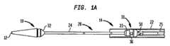 以下、本発明の構造および機能を説明するために、図1Aを参照すると、送達装置の第1の実施形態10は、遠位先端12、および遠位先端12から(図示されていない)近位端に延在するカテーテルアセンブリ14を有しており、該近位端は、ユーザが送達装置10を制御するための(図示されていない)ハンドルを備えている。送達装置10は、折畳み可能な人工心臓弁用の例示的な経大腿送達装置である。  Referring now to FIG. 1A to illustrate the structure and function of the present invention, a first embodiment 10 of a delivery device is proximal (not shown) from a distal tip 12 and from a distal tip 12. The