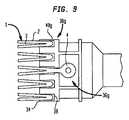 図8は、図1Aおよび図2Aにそれぞれ示されている送達装置10,10’に用いられるのに適するリテーナのさらに他の実施形態30fを示している。リテーナ30fは、保持縁34から内方に延在する凹部38が削除されていることを除けば、前述のリテーナ30eと実質的に同様である。従って、リテーナ30fでは、患者内の人工弁の鞘出しまたは展開中、外側片40fの保持縁34が、ステント支柱2の長手方向運動に制限をもたらすことになる。しかし、保持縁34がステント支柱2を個別に捕捉していないので、リテーナ30fは、人工弁を送達および展開するための送達装置の使用中に、ステント支柱が互いに重なって、絡まるのを阻止することができない。  FIG. 8 shows yet another