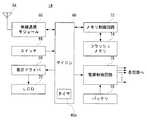 図5は、携帯端末14の電気的な構成の一例を示すブロック図である。以下、携帯端末14の各回路コンポーネントについて説明するが、先に説明した発信機12と同じコンポーネントについては簡単に説明することにする。  FIG. 5 is a block diagram illustrating an example of an electrical configuration of the
