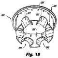 限定ではなくさらなる例示を目的として、管中心構成要素180および環状噴射口アセンブリ190は入れ子になって1つまたは複数の流体噴射口を形成する。特に、図14に示すように、中心構成要素180は、その外面に1つまたは複数の戻止め183を画定している。中心構成要素180の外面が環状噴射口アセンブリの内面内で入れ子になると、戻止め183が環状アセンブリの内面と協働して、高圧プレナム220(図1)と流体連通する導管を形成する。高圧プレナム220は、中心構成要素および環状噴射口190の遠位周方向接触面224の周縁に配置された噴射口の各々から高速ガス流を駆動するように、作動ガスによって加圧される。プレナム220の周囲の流体密封シールは、中心管部分180および環状噴射口190各々によってそれぞれ形成された周方向溝181、191に配置されたシール254、256によって確保される。  For purposes of illustration and not limitation, the