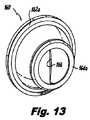 図12および図13に示すように、吸音バッフル160は、可撓性があり、器具をトロカール100のボア106を通して配置することによる等、変形した後に、元の形状に戻ることができる、生体許容性の弾性シリコーン系ポリマー材料等の柔軟な材料から作製されている。吸音バッフル160は、砂時計形断面を有しており(図1)、かつ近位周縁部162および遠位周縁部164を有しているように示されている。図示するように、近位周縁部162は、首領域165によって遠位周縁部164に接続されている。代替実施形態として、首領域165は、内部に起伏または折目(165aとして破線に示す)を含むことができる。こうした起伏は、使用時にトロカール100によって生成される騒音をさらに低減することができることが分かった。さらに、直線断面を有する通路166を図示しているが、米国特許出願第61/250,521号明細書(たとえば図54および図55ならびに関連する本文を参照)に詳細に記載されているように、正弦波形状等、断面に対していかなる所望の形状を使用することも可能である。吸音バッフルは、近位周縁ビード162aおよび遠位周縁ビード164aをさらに画定している。  As shown in FIGS. 12 and 13, the