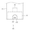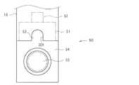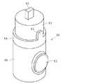 次に、図13は、他の種類の追加操作モジュールである第2の追加操作モジュールを示している。また、図14は、第2の追加操作モジュールを本体31に対して順方向に取り付けた状態を示している。第2の追加操作モジュール50は、収容凹部29に収容される円筒状の被収容部51、その上面に取り付けられ接続コネクタ52、被収容部51の下面に同軸に連続する、被収容部51よりも大径の円筒形状を有する延長部54、を有している。被収容部51には係合部30f,30bと係合する被係合部63が設けられている。また、延長部54の正面には方向を入力するための操作部材55が取り付けられている。  Next, FIG. 13 shows a second additional operation module which is another type of additional operation module. FIG. 14 shows a state in which the second additional operation module is attached to the