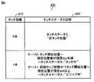 一方、タッチ指数810が「1本」である場合には、その時の状態に応じて個別に規定されている。たとえば、ケース0の場合、タッチ開始位置から現在位置の差が規定ドット数未満である。このとき、タッチパネル300のタッチステータスは「タッチ中」に設定される。ケース1の場合は、前回タップ状態でありかつタッチ開始位置から現在位置が規定ドット以上である場合である。このとき、タッチステータスは、「スワイプ中」に設定される。  On the other hand, when the