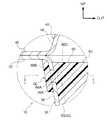また、補強部材50は、ロアメンバ30が予め配置された金型(図示省略)内に繊維強化樹脂材を射出して成形することより、ロアメンバ30と一体化されるようになっており、繊維強化樹脂材の注入口であったゲート跡(図示省略)は、本体部52の長手方向一端部側における車幅方向中央部に形成されている。つまり、この部位に相当する、金型のゲートから繊維強化樹脂材が流入されて補強部材50が成形されることにより、下壁54、内壁56、外壁58における繊維の配向が、それぞれの長手方向に沿うようになっている。  Further, the reinforcing