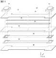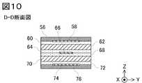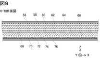 したがって、伝送線路52のY軸方向中央をX軸に沿って切断したときの断面は図9に示す積層状態をなす。また、伝送線路52のX軸方向中央をY軸沿って切断したときの断面は図10に示す積層状態をなす。 Therefore, the cross section when the center of the