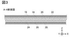 また、レジスト層16および28の各々の厚みは、絶縁層22の厚みよりも小さく、補強層20または24の厚みとほぼ一致する。また、厚み方向におけるレジスト層20および24の曲げ弾性率は“E3”を示し、曲げ弾性率E3の値は曲げ弾性率E1の値よりも小さい。 In addition, the thickness of each of the