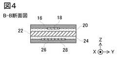 したがって、伝送線路12のY軸方向中央をX軸に沿って切断したときの断面は図3に示す積層状態をなす。また、伝送線路12のX軸方向中央をY軸沿って切断したときの断面は図4に示す積層状態をなす。 Therefore, the cross section when the center of the