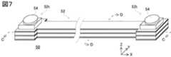 なお、上述と同様、厚み方向における絶縁層62または70の曲げ弾性率は“E1”を示し、厚み方向における補強層60,64,68,72の曲げ弾性率は“E2”を示し、そして曲げ弾性率E2の値は曲げ弾性率E1の値よりも大きい。 As described above, the bending elastic modulus of the insulating