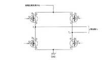 フとされ、スイッチング素子QBとスイッチング素子QCがオンのとき、スイッチング素子QAとスイッチング素子QDがオフとされることで、接続部T1と接続部T2との間に矩形波の交流電圧を発生させる。なお、本実施形態においては、各スイッチング素子のスイッチングによって生成される矩形波の周波数の範囲は数100kHz〜数1000kHz程度である。In the present embodiment, between the connection portion T1 between the switching elements QA and QB connected in series and the connection portion T2 between the switching elements QC and QD connected in series. The matching device 104 is connected to the switching element QA.